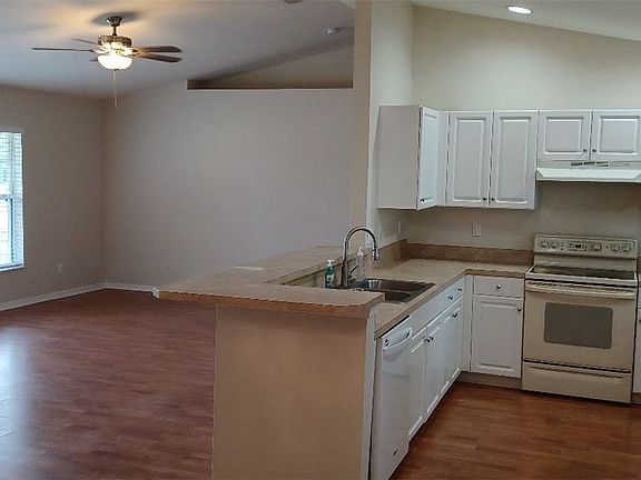 Large open great roomAll laminate flooringCanal behind the homeHigh top kitchen counter
