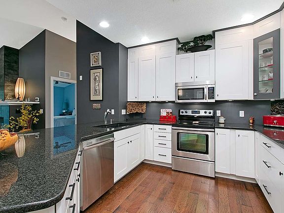 Enjoy easy living in this condo in Kimberly Woods! The 2nd floor provides privacy and vaulted ceilings. The spacious kitchen features beautiful wide plank floors, granite countertops, cabinet lighting & stainless appliances. The great room has a custom designed fireplace with gorgeous built-ins and opens up to the charming light filled den & screened porch with wooded surroundings and great views. The master suite includes a private bath and large walk-in closet. The guest bedroom has private bath access and a walk-in closet. Elevator access takes you to the secured heated parking garage. Parking spaces #20 & #21 come with this condo plus a storage unit right next to the parking spaces. Water and sewer are included in HOA fees.