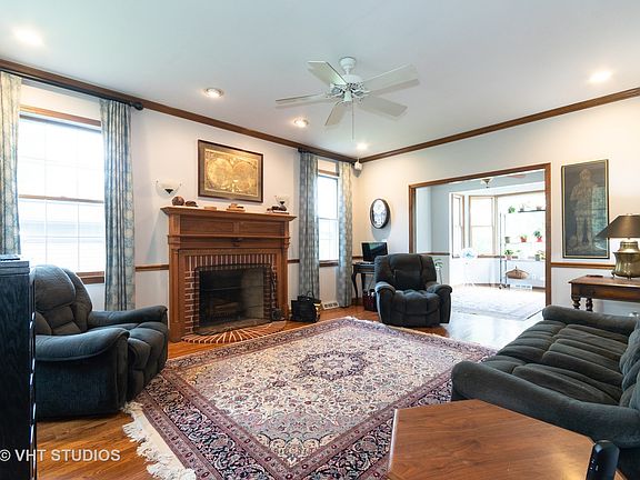 Classic Sunset Meadows beauty! In-town Geneva, just a few blocks from Western Ave School, Sunset Pool and Park District Center, with train and downtown events nearby. Here's something out-of-the ordinary: 3-story home w 5 true bedrooms, plus first floor den/office. 9-foot ceilings, hardwood floors, 2 fireplaces, custom mantles, skylites, finished basement, big mudroom/pantry. Three nice-sized bedrooms on second floor, plus 2 additional, vaulted bedrooms on 3rd floor. Additional special elements include MBR w fireplace, MBa with dressing area, heated floor, updated step-in shower;also crown molding, wainscoting, cherry cabinets, French doors, central vac, huge bay window in Dining room overlooking big deck. Carpeted rec room/family room in basement. Zoned with 2 furnaces; battery backup sump. Laundry hookup available behind pantry cabinets in mudroom on first floor. Laundry currently using basement installation. Quiet location on cul- de-sac street.Home Warranty included.
