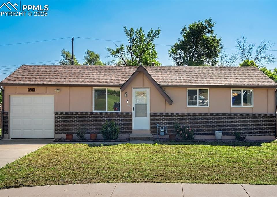 This exceptionally well maintained cozy ranch-style home in Stratmoor Valley is full of potential and perfect for anyone looking for single-level living. With 810 square feet of well-laid-out space, it features three comfortable bedrooms, an updated full bath and an attached 1 car garage. The living room is bright and inviting, and the eat-in kitchen offers plenty of cabinet space and room for casual dining. The backyard is fully fenced—great for pets or outdoor activities and there is room to park all of your toys or RV. Located in the Harrison School District and close to shopping, hiking trails, I-25, Pikes Peak State College Campus, and Fort Carson, this property combines comfort with accessibility. It’s a great fit for first-time buyers looking for a solid well maintained home with room to grow. Come take a look and see the potential for yourself! Brand new windows* Brand new garage door* Brick and Wood Exterior* New roof in 2019* Fully updated bathroom* Updated lighting throughout* Newer carpet throughout