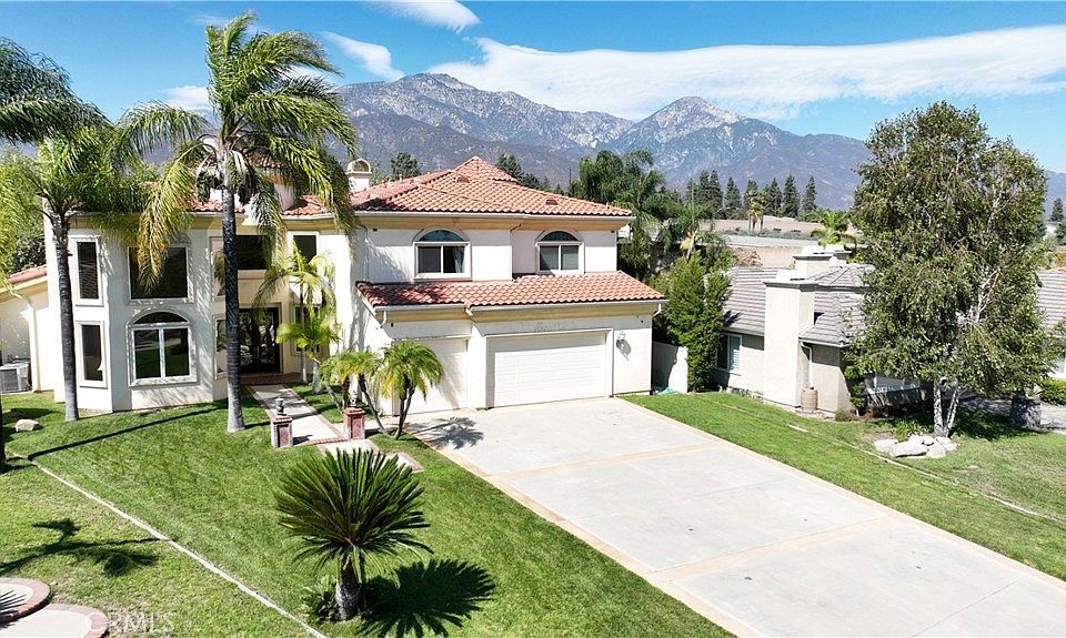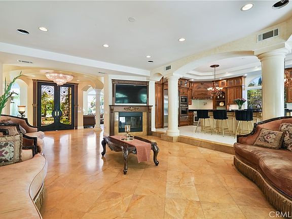 This stunning Mediterranean designed home features stucco walls, red-tile roofs, arched doorways, wrought iron details, and warm, earthy color palettes. An aesthetically impressive and visually appealing residence with high-end finishes, elegant details and a remarkable overall appearance. The home was completely rebuilt in 2009 and consist of 5,617 square feet of living space. When entering through the designer glass & wrought iron entry doors, you are instantly taken back by the marble flooring, Venetian plaster, 20' ceilings, custom chandeliers & staircase with wrought iron railings. This estate home features 6 bedrooms with 6 baths. It's ideal for accommodating large families or multiple guests. You'll enjoy the huge living room with massive high ceilings and warm fireplace. Formal dining room large enough to host dinner parties and holiday feast. Adjacent to the entry you'll find the massive family room with fireplace and open to the kitchen. The kitchen is a chef's delight with an abundance of kitchen cabinets, granite counters, built-in commercial grade stainless steel Thermador appliances and large center island for entertaining your family and guests. On the main floor you'll find 3 bedrooms with a secondary primary suite and bath, that includes a walk-in shower, closet and jacuzzi tub. Upstairs you'll find 3 additional bedrooms including the master suite. The sprawling master bedroom includes a two way fireplace, sitting room, EnSuite bath with walk-in closet, shower, separate tub, dual sinks with designer sinks and fixtures. The long driveway will accommodate multiple vehicles and the rear yard is ideal for entertaining. Overall, this estate is very luxurious, and beautifully designed with Mediterranean architectural charm and ample space for comfort!