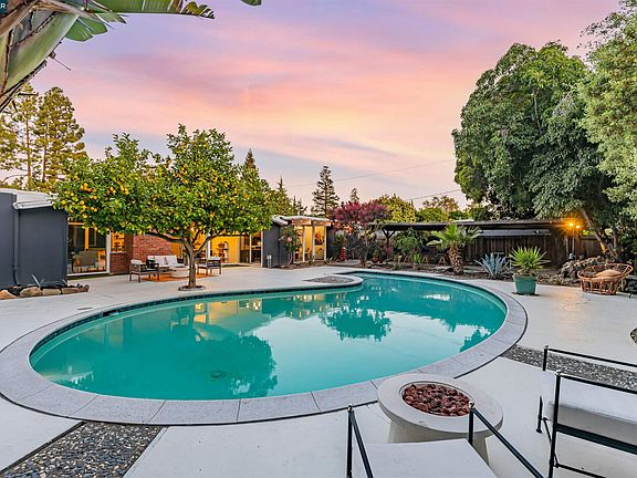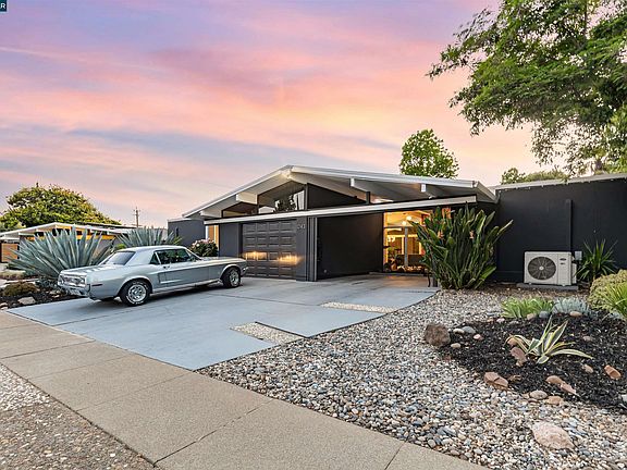 Crafted by the iconic Joseph Eichler, this classic mid-century modern home blends architectural pedigree with resort-style amenities with a private swimming pool and direct access to the backyard park’s tennis courts. Meticulously renovated with over $250K in improvements, this exceptional turn-key home is ready for your life's enjoyment. Highlights include new Italian terrazzo tiles in the primary suite and a recent $50K kitchen and bath renovation. Entertain with style in the elegant chef’s kitchen, featuring a Forno appliance suite including an induction stove, refrigerator and brand-new dishwasher. Renovated with energy efficiency in mind, the home offers a state-of-the-art PVC roof under warranty, dual-pane windows, electric car charger and mini-split AC/heating units throughout. Plus, a $40K pool renovation with a high-efficiency filtration system rounds out the latest improvements. Situated on an expansive lot, the property includes multiple driveways—perfect for RVs, boats, and trailers. Additionally, the home offers a roomy dog run where your pets can play to their hearts’ content. With unobstructed views of Mt. Diablo, this classic gem is ideally located near scenic hiking trails, BART, shops and freeways. Don’t miss your chance to own a piece of architectural history!