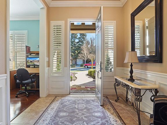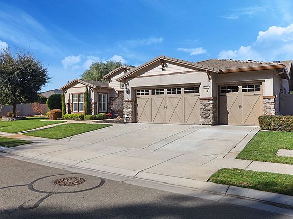 This gorgeous Bedford model located in Del Webb Woodbridge has an exhaustive list of features and over $100,000 of upgrades. You will be welcomed with a grand entrance into a spacious great room with African hardwood floors, built in entertainment unit, fireplace and dining room. The kitchen is a dream with ample counter space and cherry cabinets. The generous master has a beautiful bay window great for sitting and enjoying a book. The master bath includes a soaking tub, shower, his and her separate toilets and a roomy custom organized walk-in closet. This home is perfect inside and out...located on a premium acre lot in a cul-de-sac with PAID FOR SOLAR, you will enjoy the elegantly landscaped backyard with an extended covered patio, beautiful waterfall, pergola, relaxing fountains, shed and plenty of space to relax during the day. Wake up to stunning sunrises and relaxing to picturesque evening sunsets in a resort-like setting. Make this home yours!