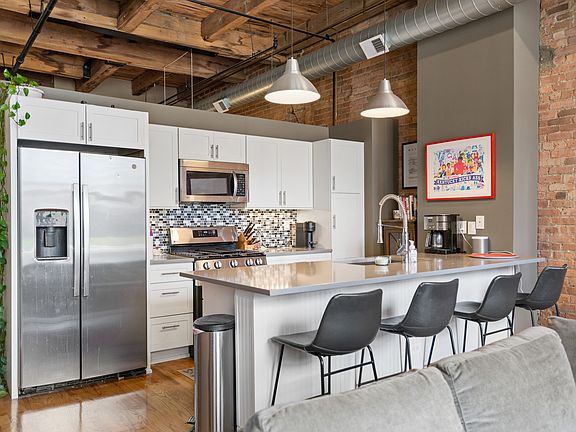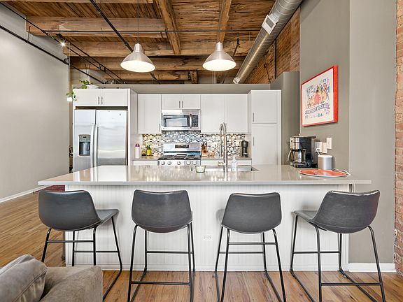 Live the Loft Lifestyle in the Heart of the South Loop! This true timber 2Bed/2Bath loft is move-in ready and offers the largest floor plan in the building, with soaring 14-foot ceilings and a perfect blend of character and modern comfort. Flooded with natural light through expansive windows, the spacious living area showcases beautiful hardwood floors and an open layout ideal for entertaining. The chef's kitchen features quartz countertops, white cabinetry, a custom undermount sink, stylish backsplash, stainless steel appliances, and a large island with seating-perfect for casual dining or hosting guests. The generously sized primary suite includes a massive walk-in closet and a spa-inspired en-suite bathroom. A spacious second bedroom and full bath close by. Enjoy the convenience of in-unit side-by-side laundry, plus a HUGE bonus storage room that easily doubles as a home office or flex space. With 1,550 sq ft of living space, this timber loft delivers the charm you crave in a boutique building. Garage parking available for an additional $30K. Unbeatable location-steps from Trader Joe's, Whole Foods, Starbucks, Dunkin', Soldier Field, Northerly Island, Grant Park, the Lakefront Trail, Shedd Aquarium, and Adler Planetarium. Just one block from the CTA (without the noise!) and around the corner from a dog park. Explore every detail in 3D-click the virtual tour button now!