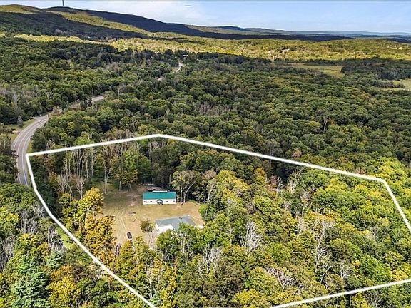 Sits on a breathtaking 10+ acre lot. The main residence features an oversized living room with a cozy fireplace and double sliding doors that open to a finished, insulated enclosed porch ideal for relaxation or guest accommodations. The spacious kitchen is designed with wall-to-wall cabinetry, a breakfast bar, and flows seamlessly into the dining room with a charming bay window. The expansive primary suite includes a private bath and double closets, while additional large bedrooms with generous closets and a full bath with a walk-in shower provide plenty of room for everyone. A versatile in-law suite with its own entrance, full bath, and Jacuzzi tub adds even more flexibility. The finished lower level offers two multipurpose rooms, a full bath, a large living area with a fireplace and windows that flood the space with natural light, plus a full eat-in kitchen with a breakfast island perfect for entertaining or extended living. Outdoors, a massive 40' x 80' heated Pole Barn with a half bath provides endless options for a workshop, storage, hobbies, or business use. Surrounded by natural beauty, this property is truly one-of-a-kind and must be seen to be fully appreciated!