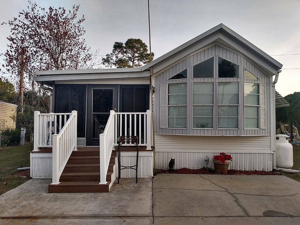 This 1990 home features lighted tray ceilings in kitchen with updated appliances. Seamless transition to Florida room adds 10 x 34 living space including bonus room with separate entrance. Front and back porches to enjoy the seasonal weather. Large backyard with 14 x 12 2015 shed that has electricity. Beautifully tiled step in shower. All plumbing and duct work updated by seller. Priced for a quick sale with reduction factored in for carpet allowance. Located in an all age, pet friendly community with pool, spa, shuffleboard and a full calendar or social events. Do not hesitate to call for showing. LB10353