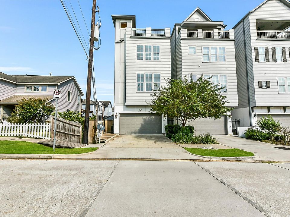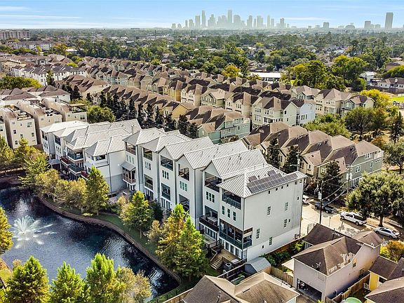*See this one-of-a-kind, distinctive, unique, energy generating home in the Greater Heights w/waterfront living & multiple balconies*. Prime location: 1 mi from 610, 2 mi from I-10 & blocks from White Oak Bayou trail. With solar panels & whole house generator. 3 balconies, 2 are covered (2 on 4th fl, 1 on 2nd). 2nd fl is heart of the home for cooking, entertaining or relaxing, listening to the fountain. Fenced & gated backyard w/ 1st fl deck, cypress & winged elm trees on the pond perimeter. 1st fl bdrm & 2-car garage. 2nd fl has the kitchen w/large island & pantry, dining & family rm w/ 10’ sliding glass doors to the balcony. 3rd fl is the 3rd bdrm, laundry, primary suite & bath w/ two large walk-in closets. 4th fl is game/entertainment/workout rm w/ two 8’ glass sliding doors, opening to a deck to the S (Downtown/Buffalo Bayou) for rays or fireworks, & covered deck to the N featuring the pond w/ water feature. Hardwood floors, crown molding & tall ceilings w/ abundant natural light.