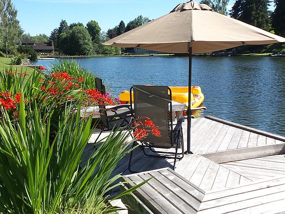 Rare opportunity for lakefront home close to everything. Enjoy swimming, kayaking, fishing, and wildlife watching on this private lake. Nicely updated home with soaring ceilings and huge windows. Finished daylight basement with mini kitchen offers potential 2nd living quarters. Beautifully landscaped .34 acre lot. Not in flood zone, no flood danger.