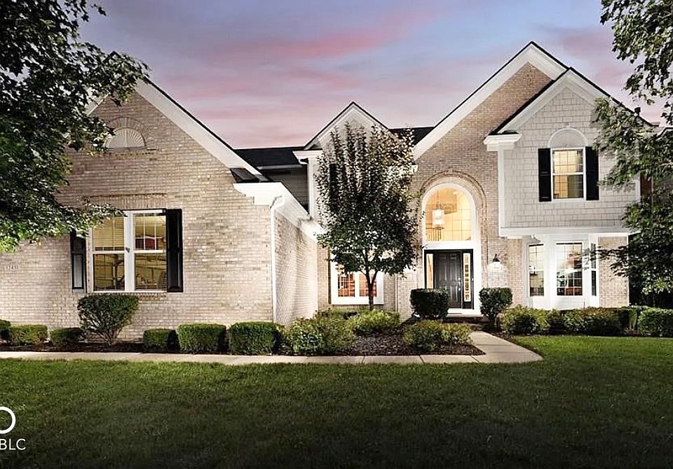 Golf course community home in Fishers! Features 2-story entry & great room, remodeled chef's kitchen, double staircase, sunroom, den/office or guest room, large master bath, basement w/ plumbing for bath & bar. Private lot w/ mature trees for serene living!