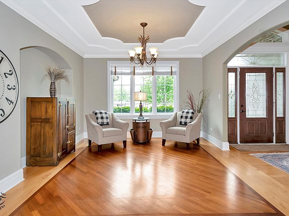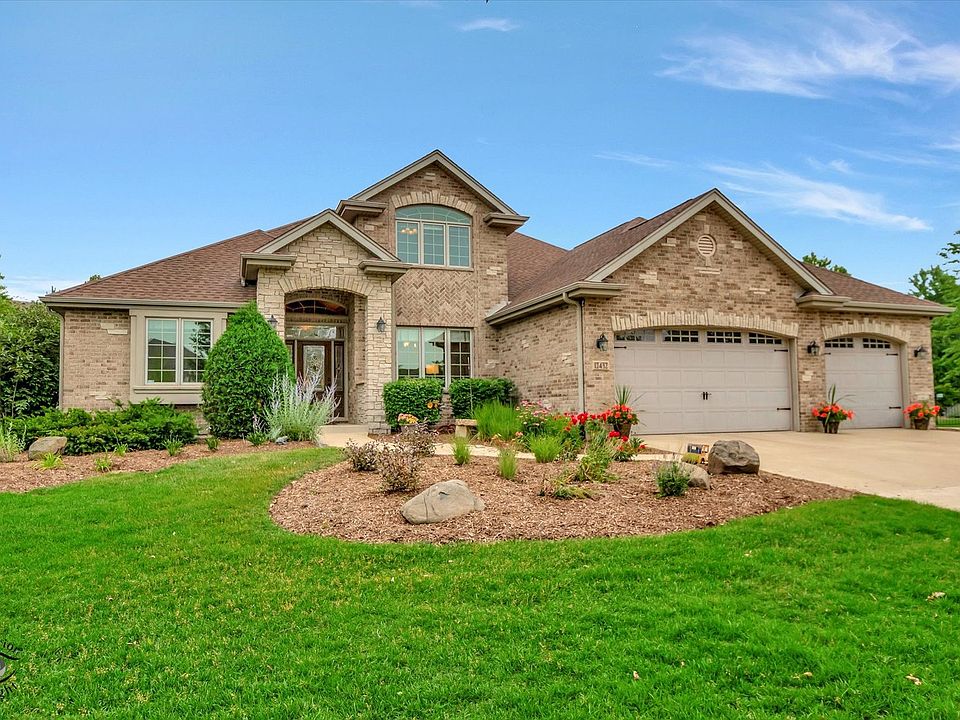 Welcome to this spacious, quality-built all brick 3500 sq ft ranch home with a full basement on one of the largest lots in Foxborough Estates (Meadows/Preserve/Den), over a half acre in a cul de sac! This four bedroom, three-and-a-half-bathroom home has an open concept split floorplan (primary bedroom on its own side), california corners, 9' ceilings, 8' solid core doors and 7.5" white baseboard trim, tray celings with accent lighting. A dream kitchen with granite counters and backsplash, custom cherry cabinets, stainless steel appliances, double oven, 5 burner cooktop an abundant amount of counter space in addition to the must have breakfast bar. The eating area is surrounded by windows which enables you to view your very private and spacious backyard. Oh, let's not forget the private office with french doors that is conveniently located on the main floor. The loft area houses bedroom 4, a full bathroom and a media room. A full basement has been framed and is ready for drywall. Custom wood blinds throughout. Swing set is included. New carpet in the primary bedroom, hot water heater 2023, step outside and enter your own oasis, professionally landscaped for ultimate privacy! Heated 3 car garage. Lot size is .6 of an acre!