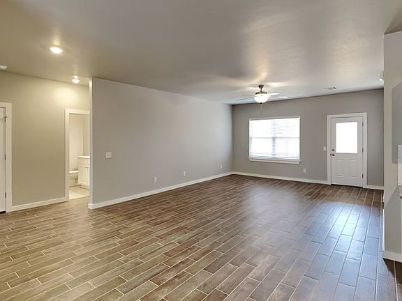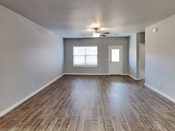 3 Bedroom 2 Bathroom 2 Car Garage Home in Oakdale School District. Walk into this open concept living room and kitchen with granite counter tops, tiled backsplash, center island and pantry closet with plenty of cabinet storage. The primary bedroom has a nice feel with natural lighting from the large windows and breezy ceiling fan. Primary bath has a dual sink vanity, tiled walk-in shower and double large walk-in closets w/ access to the utility room! The secondary bedrooms are opposite of the primary suite for extra comfort. Hall Bath is located between secondary bedrooms and includes tiled surround with large soaker tub and shower combo with cubby space. The outdoor living includes a covered patio with cable outlet, full fencing and fully sodded yards. Equipped with an in-ground irrigation system. Lawn care included. Neighborhood Playground and Basketball Court Available!