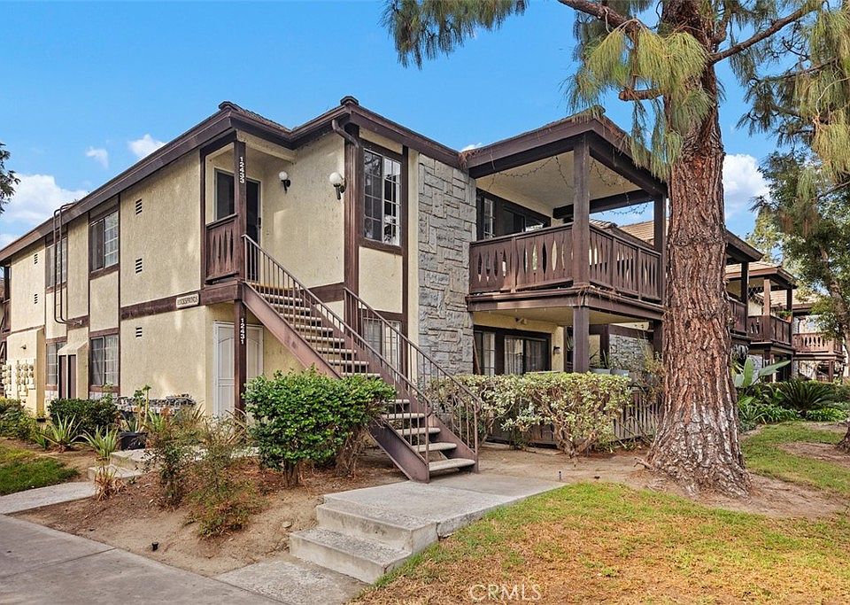 Discover this spacious and inviting condo on 2nd floor, nestled in a desirable gated community in Garden Grove. This beautifully maintained home features an upgraded kitchen with granite countertops and tile flooring, along with a private patio overlooking the community pool and grass area. Recent upgrades include a modernized bathroom, and a new air conditioning system. The neighborhood boasts a pool, ponds, and well-kept parks, providing plenty of amenities for relaxation and recreation. Washer and dryer units, and refrigerator included and located inside the unit. 2 car detached garage with storage comes with unit. The HOA covers trash collection and hot/cold water expenses. Conveniently situated near excellent restaurants, shopping, and entertainment options, this condo is a must-see!