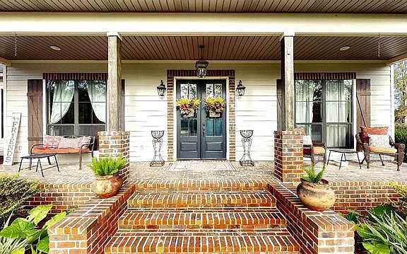 Beautiful custom home in immaculate condition on 1.58 acres w oak trees, Flood zone C. Lots of windows, natural light, large open kitchen, quartz counters, upstairs bonus rm, 20' ceiling in living rm w/upstairs balcony, large walk in closets, storage. Many custom touches. Propane and artesian well, 2 tankless hot water heaters. 1500sqft metal shop building, 3 yrs old. Nature watch from inside the house through all the windows or relax outside on the large front porch, or back covered patio.