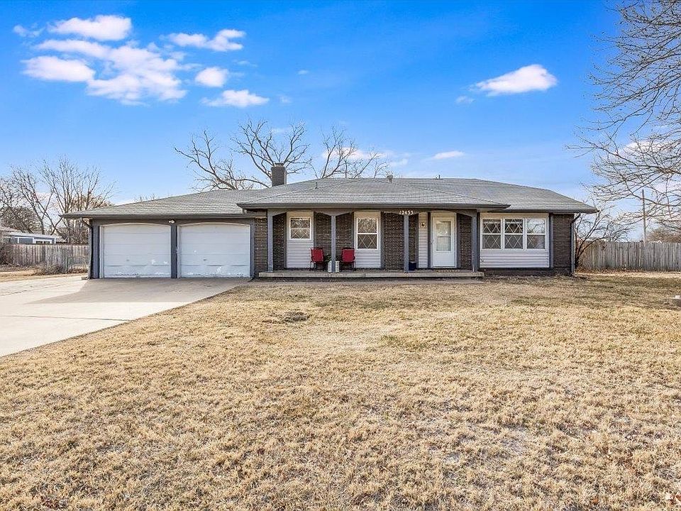 This is a Don't Miss! Hard to Find...Half Acre Corner Lot in Goddard Schools! NO HOA ~ Build your Extra Shop or Pool! 4 Bedrooms/2 Full Updated Baths ~ Beautiful Vaulted Living Room, Large Updated Family Kitchen, All Appliances Remain! Lower Level Walk Out Basement to the 20 x 10 Sunroom. Lower Level includes Family Room with Woodburning Fireplace/Full Bath with Laundry Room & 4th Bedroom. Basement Storage with Extra Room that could be finished. Oversized 22 x 24 Two Car Garage with Extra Parking**New Hot Water Tank installed last 6 months**Home on Private Well with Newer Water Softener & Filtration System**Needs Some TLC...Priced to Sell & Sold As Is. Seller will include a New Roof & Gutters**Come Take a Look! Schedule Your Private Showing Today!