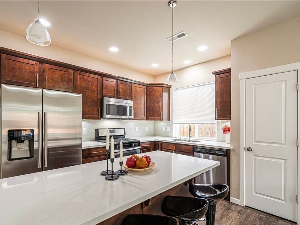 Step inside to discover an open-concept layout that seamlessly connects the living, dining, and kitchen areas, perfect for entertaining or relaxing. The modern kitchen is equipped with sleek countertops, stainless steel appliances, and plenty of cabinet space, making meal preparation a delight.