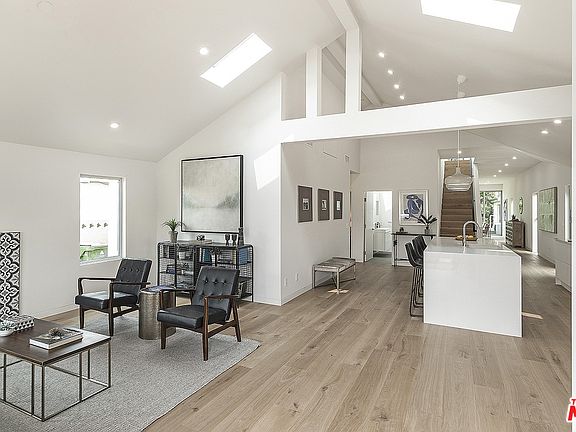 Crafted as a labor of love, this architectural home demonstrates contemporary minimalist design at every turn. From towering ceilings and well-placed skylights to wide-plank flooring and walls of glass the space lends itself to modern living. The kitchen is the heart of the home with vaulted ceilings, stainless appliances and sleek cabinetry. The thoughtfully designed layout has two living spaces including a family room with sliding glass doors that create a seamless connection to the yard. With three generous bedrooms downstairs, the entire second floor is a private primary suite. From a luxe bathroom featuring floor-to-ceiling tiles and sliding glass doors that open to a balcony, to a lofty office space and open dressing area, the second floor is strategically designed with style, function, and serene views. Outside are multiple entertaining areas including a covered patio, wood deck and grassy yard. For anyone who appreciates striking custom architecture this home is a show-stopper.