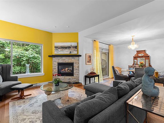Private and peaceful settingSurrounded by treesBacking onto rocky creekNatural wood floorsOpen concept main levelModern kitchenGas fireplace