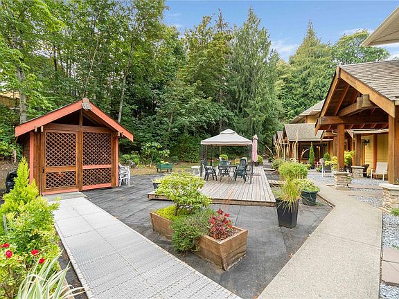 This beautiful 2 bed 2 bath townhome in north Ladysmith sits in a private and peaceful setting, surrounded by trees and backing onto Rocky Creek. 9ft ceilings and natural wood floors throughout the open concept main level create a sense of space and light. The modern kitchen is big enough for multiple cooks and includes a sit-up counter and space for a bar fridge. A gas fireplace in the living room invites you to settle in for cozy evenings in the winter, while the spacious dining room leads out to the deck for summer entertaining. The 550 sqft primary bedroom is expansive yet comfortable, with its own gas fireplace and another private deck for relaxing and listening to the creek babble by. The ensuite is huge and plumbing-ready for a luxurious soaker tub. The complex includes a fully equipped gym, indoor pool and hot tub, as well as bike/kayak storage and secure underground parking. Enjoy tranquil West Coast living, only minutes away from shops, the marina, and Transfer Beach.