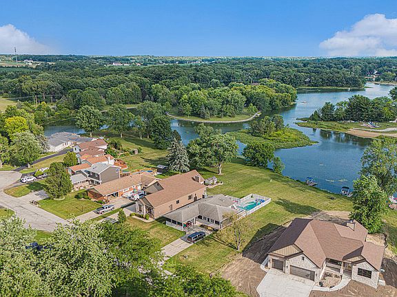 Charming LAKEFRONT RANCH WITH WALKOUT BASEMENT WITH OVER 3300 FINISHED SQUARE FEETWelcome to this beautifully maintained 7-year-old ranch-style home located on a prime lakefront lot. Nestled in a peaceful gated subdivision, this property offers stunning water views and direct access to the lake, perfect for boating and water activities right at your doorstep.As you enter, you'll immediately appreciate the bright and airy open floor plan. The home boasts gorgeous hardwood floors throughout, 10' ceilings adding warmth and character to every room. The spacious living area is ideal for family gatherings or entertaining, with plenty of natural light pouring in through the high-quality Anderson windows.The chef's kitchen features modern finishes and a convenient layout with a oversized island making it easy to prepare meals while enjoying the picturesque lake views. The master suite is a true retreat, with a private ensuite bathroom designed for relaxation and comfort.For those who work from home or need additional space, there's a dedicated office that can easily be converted into a fourth bedroom, giving you flexibility to meet your needs. The finished walkout basement adds even more living space with a custom bath and a kitchenette perfect for related living or simply additional family room. Double doors lead you into approximately 1300 sq ft of storage or a blank canvas to create additional living space.This is the builder's personal home, so no detail has been overlooked. With high-end finishes throughout, you'll enjoy peace of mind knowing that everything has been carefully crafted and designed. Plus, the gated subdivision offers added privacy and security.Whether you're looking to enjoy serene lakefront living, have easy access to water activities, or simply relax in a beautifully appointed home, this property offers it all. Don't miss the opportunity to make it yours!