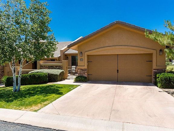 Fabulous Prescott Lakes townhome in gated Willow Park Estates. Adjacent to Athletic Club and golf course. Courtyard entry. Open concept Aspen floor plan. Vaulted ceiling, clerestory windows, entertainment center, surround sound. Spacious master suite, private bath, walk-in closet opens to rear patio. 2 guest bedrooms and bath. Recently refurbished, new paint inside and out, carpet, garbage disposal, toilets, faucets/shower heads, hot water circulating pump and more. Level entry into house and 2 car garage. Perfect lock and leave vacation getaway. Enjoy 2 pools, tennis, pickle ball, exercise center, restaurant, grill at the Club. Golf memberships available. Offered unfurnished but can be purchased turnkey furnished.