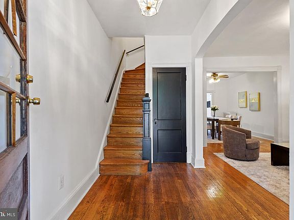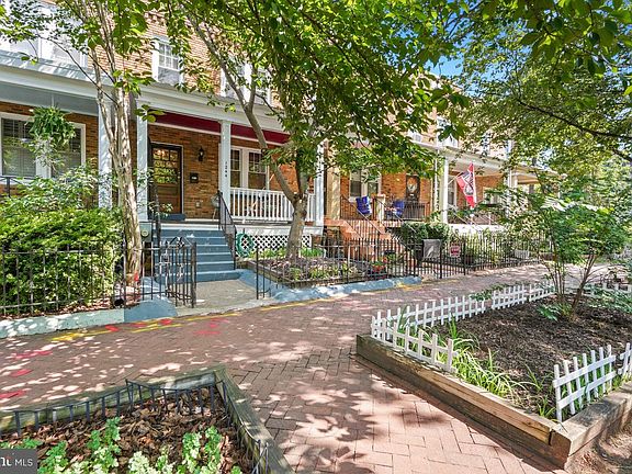 Location, Location, Location. Welcome to charming and picturesque G Street. This single-family brick rowhouse in North East Capitol Hill features a shaded mahogany front porch, perfect for having your morning coffee and watching the world go by. It is on a tranquil, tree-lined block with brick sidewalks, blocks from the U.S. Capitol, Library of Congress, and Eastern Market. With a Walk Score of 95, Transit Score of 70, and Biker Score of 92, stores, shops, and restaurants are just a block away. In addition, Whole Foods, Giant, and Safeway are within .5 miles. Kingsman Field Dog Park is a short five blocks away. The free DC Streetcar on H Street offers easy access to Union Station and its many transit options, including Metro, Amtrak, MARC, and several bus connections. Multiple city bus stops and Capitol Bikeshare are one block away. As you step inside this freshly painted home, you will notice the original oak hardwood floors, adding charm and character. The light-filled formal living and dining rooms flow seamlessly into a spacious eating area with a large picture window and a gourmet kitchen featuring newly upgraded appliances. This lovely three-bedroom home includes a full bath, a first-floor powder room, and a half bath off the downstairs recreation room. Every room is bathed in natural light, creating cozy sanctuaries perfect for rest and relaxation. Conveniently located off the Primary Bedroom is a large office overlooking the backyard. The eating area opens to a dual-level deck, ideal for cookouts, with stairs leading down to a large backyard, multiple gardens, and access to a private parking space via the back alley. Downstairs is a spacious recreation room featuring exposed brick walls. The adjacent utility room with powder room opens to a stone-paved patio, shaded by an overhead grape arbor, providing a serene outside oasis.