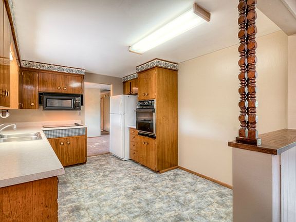 Solid well maintained rambler with alley access. Home features newer windows, updated bathrooms, and more. Separate entrance into extra finished room would lend itself nicely to mother-in-law unit, family rm, or beauty shop (plumbed for sink). Kitchen w/lots of cabinetry and updated appliances. Large living room with fireplace. Hardwood floors under living and dining rooms as well as the bedrooms. Wonderful landscaped back yard with covered patio, oversized sized one car garage, RV parking.