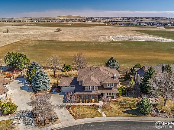 Peaceful and private setting on one of Hawk Ridge Estates largest lots. Beautiful home with many features including a rare 4 car garage. Backs to Boulder County open space and easy access to miles of walking trails. Covered front porch leads to an elegant 2 story foyer and a welcoming approach to the spacious and functional floor plan. Home features stunning Craftsman style woodwork and cabinetry. Lovely living room effortlessly flows to formal dining room with built-in cabinets and serving counter. Upscale kitchen features GE Profile double ovens, GE Cafe refrigerator, induction cooktop range and Bosch dishwasher. Newer quartz countertops and backsplash plus a gourmet chef's hood. Two story family room has gas fireplace and built-ins plus a planning desk with extra cabinets. Split staircase leads to a cozy loft and four bedrooms on the upper level. An incredible primary bedroom with sitting area features a wall of windows to admire the sunrise also includes a gas burning fireplace and luxury 5-piece bath and walk in closets. Two secondary bedrooms are connected by a jack and jill bath, the fourth bedroom features an en suite 3/4 bath. You will find tons of potential in the large basement with 9'6" ceilings and rough in for a bath. Expansive fully fenced lot with trex deck, stamped concrete patio and separate fire pit area.