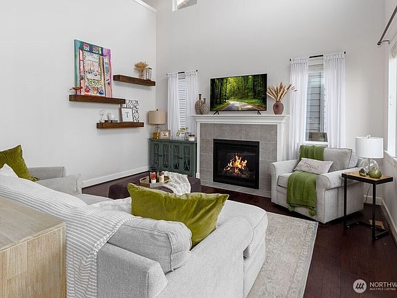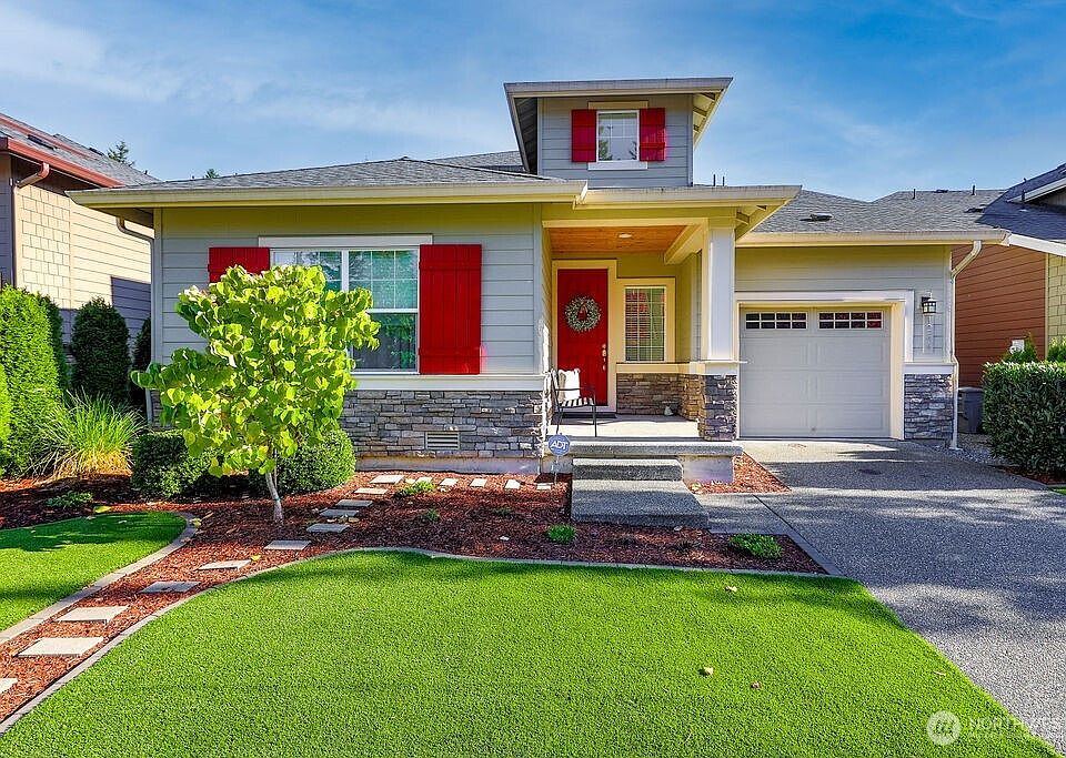 Beautiful North Bend home w/stunning Mt. Si views! The open concept great room features a cozy gas fireplace that opens to the kitchen & eating area. The main-level primary suite offers a spacious 5-piece en suite bath, oversized walk in closet, new carpet & lots of storage. Upstairs you'll find a 2nd bedroom w/full bath & a loft/office easily converted to a 3rd bedroom — many neighbors have done the same. Enjoy eco-friendly turf in front & back yard, amazing landscaping, large tio (umbrella & base stay, generator hook-up, & electric window shades on upper windows for ease. Fully fenced yard, central A/C, efficient HVAC, & just 2 minutes to downtown North Bend. Nestled in a quaint, relaxing neighborhood w/incredible mountain views.
