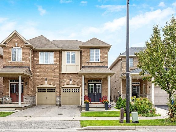 SPACIOUS. BRIGHT. TURN-KEY. You do not want to miss this 4 BEDROOM, 3 BATHROOM SEMI-DETACHED ALL-BRICK family home that features great design choices and loads of upgrades! The 'Joy' model (aptly named!) features 2,300 SF of finished living space (including 481 SF of builder finished basement). You can just feel the abundance of SPACE with the 9' CEILING on the main level, loads of windows, large rooms and a SEPARATE ENTRY into the BASEMENT. The main level has a large dining/living room, powder room that is tucked away from the living space for added privacy, and the oversized eat-in kitchen offering stainless steel appliances, including a gas cooktop, wall oven and built-in microwave, quartz counters, loads of cabinet space including a pantry, tile backsplash, moveable centre island with breakfast bar, spacious breakfast area and walkout to the yard. The upper level features 4 generous bedrooms, one being the spacious primary bedroom retreat with walk-in closet and 4-pc ensuite, massive linen closet and a 4-pc family bathroom. The professionally finished basement features a separate entrance, pot lights, oversized window, large family room, rec room/home office/gym and laundry with sink. Enjoy the private over-sized yard with pergola, large hardscape patio (2020) and shed. Additional features include: a lovely front porch so you can enjoy your coffee as you watch the kids play, gas line rough-in for BBQ, gleaming hardwood and tile on main floor, pot lights and crown moulding, new LG SS dishwasher and Samsung SS fridge with French doors and beverage centre (2024), furnace (2019), solid wood stairs with metal pickets, rough-in for future bathroom in basement, rough-in for central vac and convenient garage entry into home. Ideally located close to schools, parks, restaurants, coffee, library, community centres, shops, GO station and easy highway access! Affordable, spacious, turn-key, 4-bedroom living ... book your showing now!