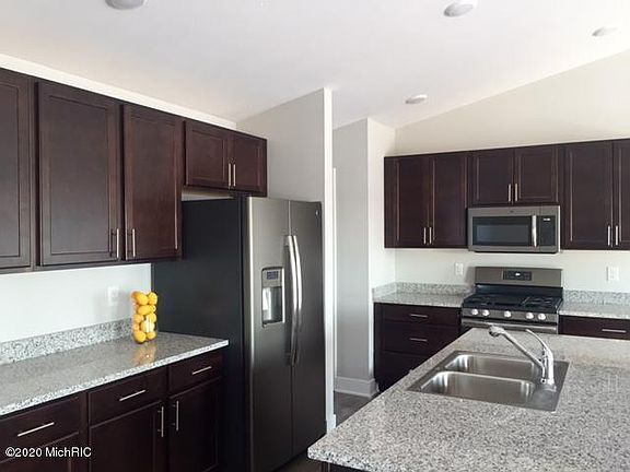 Enjoy maintenance free living in this well kept condo in West Point Condominiums. Great open floor plan. Excellent working kitchen has wonderful cabinet and counter space plus a center island. Granite countertops and slate appliances. Great room with vaulted ceilings and natural light welcomes you home. Sliders lead to the deck overlooking the private back yard. Spacious master bedroom features bath with double sink vanity. Another nice sized bedroom and second full bath. Superior Westside location convenient to shopping, recreation and easy access to major roads. Attached 2 car garage.