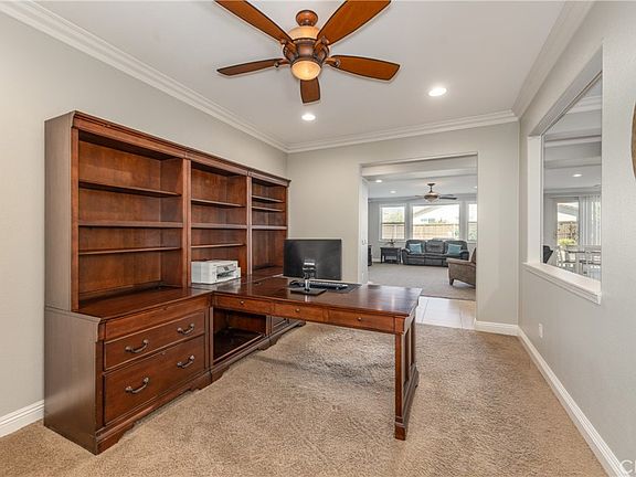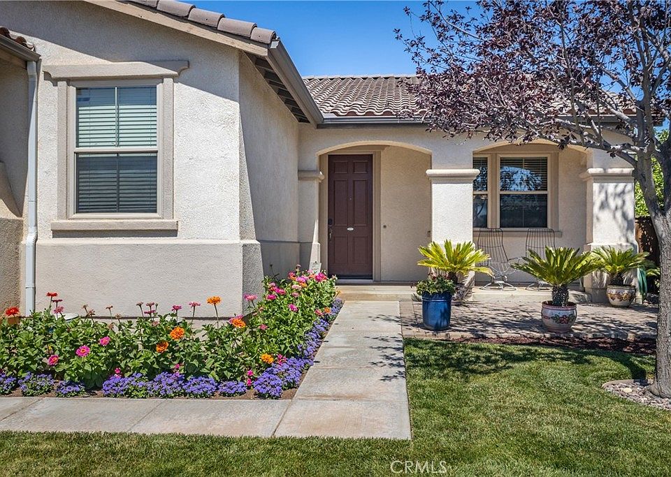Welcome to 1244 Sea Lavender Lane! Located in the Sundance Community of Beaumont, this beautifully maintained 3-bedroom, 2-bathroom home offers just over 2,400 square feet of well-designed living space that blends comfort, style, and everyday functionality. Inside, a spacious open concept living area flows effortlessly into the kitchen, perfect for both casual living and entertaining. A formal dining room adds a touch of elegance, while a bonus office provides flexibility for remote work or hobbies. Upgraded details like crown molding and classic baseboards add charm and sophistication throughout. The primary suite is a peaceful retreat with two closets, additional storage space, and a spa-like en suite bathroom featuring dual vanities, a soaking tub, and direct access to the backyard. Down the hall, two nicely sized bedrooms and a full bathroom offer plenty of space and privacy for family or guests. Additional features include an indoor laundry room and a tandem garage with overhead storage, perfect for extra gear or workspace. Step outside into the expansive backyard, complete with raised garden beds and thriving grape vines, creating a lush, relaxing setting ideal for outdoor living and entertaining. Just a short stroll away, enjoy access to one of several community recreation areas featuring a play area, basketball courts, and open green space—perfect for fun, fitness, and relaxation. With its spacious layout, stylish finishes, and prime location, this move-in-ready home is just waiting for you to make it your own!