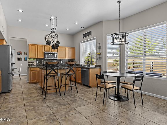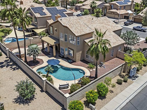 AMAZING VALUE - CHECK THE PRICE PER FOOT! Welcome to this beautiful home in Gilbert with 5 bedrooms, 3 bathrooms, living room, family room, dining room, large kitchen, vaulted and double height ceilings, dry bar, true 3 car garage pool, grill area and a corner lot with only one neighboring property PHEW! Waking in the home greets you with a comfortable and relaxing vibe that is sure to help the day's stress melt away. The large living room welcomes you and as you pass the bar on the way to the pool you make yourself an iced coffee or adult beverage. The pool was recently redone and the baja step gives you a perfect place to unwind and cool off. The upstairs master has all the space you could need and there is a game room with room for all the games or all the kids.