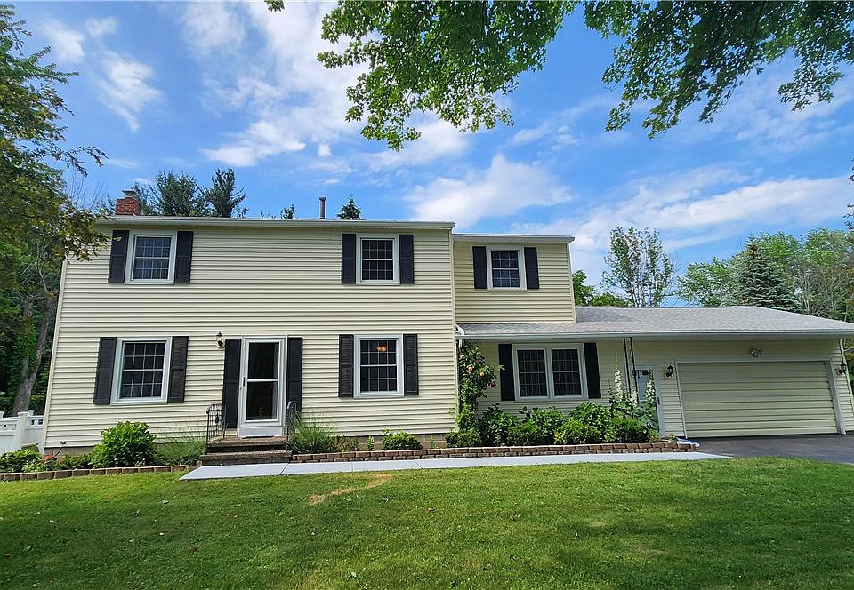 This real estate market is crazy! Absolutely gorgeous 3 bdrm, 2.5 bath colonial lives large! Amazing primary suite with a bath that will rock your world! The rest of the house is pretty great too! Large living room is light and bright and has wood stove with new chimney, First floor has hardwood flooring throughout. Dining room w/passthrough to kitchen, Great kitchen loaded with cabinet space, stainless steel appliances, breakfast bar and large walk in pantry. Family room with custom built shelves. Great mud room entrance helps keep the house clutter free with storage for shoes, boots and coats! Generous bedroom sizes, primary suite with large walk in closet, 2nd closet and a fabulous primary bath w/2 linen closets, double sinks, quartz counter, walk in shower with seat and whirlpool tub. Need a little more space? Head down to the finished basement area! Rec room, sewing room, office, playroom, whatever you want to do! So many updates too! Roof 2019, Furnace 2018, central air 2024, water heater 2020, whole house generator, glass block windows in the bsmt, Garage is oversized and professionally finished. Newer windows and gutter guards. Vinyl siding. The list goes on! Two level deck and a fabulous parklike yard! All of this just minutes to golf, hiking, parks, restaurants, schools, shopping, expressway. Hurry this is one house you must see!