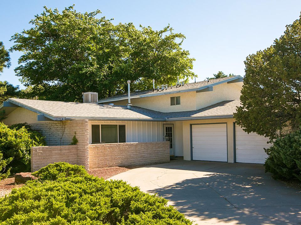 Great opportunity to bring your own vision to this great home located in a convenient NE Heights location! This home has been lovingly maintained by the current owners for 45 years! The roof was replaced in January of 2019 and comes with a transferrable warranty. The water heater was also replaced in January of 2020. This home is located on a huge corner lot and features a huge garage! The backyard is fully walled and has large mature trees and grass. Inside, you will find dual master suites, one up and one down, 2 living areas, 2 dining areas, and 3 bathrooms. Some updates would make this home really shine! Conveniently located within a block of Onate Elementary School. Easy access to I-40, Sandia Labs, and Kirtland Air Force Base. Act Quickly, this one won't last!