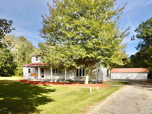 Trade the noise for nature. Come home each evening to country serenity with space to breathe, relax, and gather. Discover this 4-bedroom, 2-bath home nestled on just under 3 acres. A rare find in the country with the benefit of city water. The kitchen space offers a generous footprint and vintage charm ready to be reimagined into today’s modern gathering place. Enjoy peaceful views from both the front porch and the spacious covered back patio where trees, not neighbors, surround you with privacy. The oversized 3-car detached garage is a standout, complete with 200-amp service making it perfect for hobbies, storage, or workshop needs. Both the garage and home feature dedicated generator hookups for a portable unit for added peace of mind. Enjoy the warmth and charm of the wood stove while efficiently heating the home during the colder months. Convenient main floor laundry.Entertain, work on projects, or simply relax outdoors listening to the quiet sounds of nature, this solid home is a rare find providing the perfect environment and price! Roof 2021-A/C 2024-furnace approx. 10 yrs. * Virtual video tour contains computer-generated virtual staging used for illustrative purposes only, to show possible design ideas and how rooms connect. Actual finishes, furnishings, and dimensions may vary.