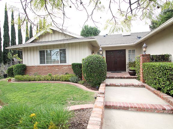 Welcome to this beautiful single story Balboa Highlands Buckingham built home located high in the hills. This charming home offers 3 bedrooms and 3 baths in 2148 square feet on a 9704 foot lot built in 1966. A formal entry has double doors with sidelites allowing natural light to reflect on the beautiful limestone floors and a powder room for guests. This home features an expansive Livingroom enhanced with recessed lighting, Brazilian Cherrywood floors, custom crown molding, stone fireplace and 12 ft French doors leading to the rear yard. A traditional eat-in kitchen with upgraded GE stainless steel appliances and ample cabinet space for storage with adjacent service porch for the washer dryer that leads to the 2 car garage with ample storage. The adjacent a den could double as a formal dining room. The large Master suite with boasts newer windows with custom casing and blinds. Master bath with marble floor and shower with a seamless shower enclosure. There are 2 over sized bedrooms and a redone main bath. Brazilian Cherrywood floors and vinyl windows throughout the main living areas and bedrooms. Enjoy the mountain views from the private entertainers backyard with Italian porcelain tiled covered patio draped in wisteria vines and beautifully landscaped with fruit trees, roses and grass areas.