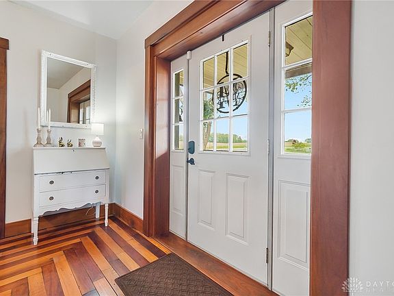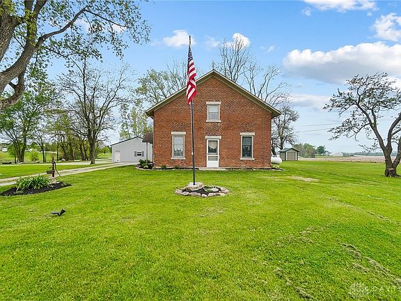 Beautiful unique country charmer with this renovated historic 1860 brick one room schoolhouse! This 2268 square foot home sits on a corner lot in the middle of the country. 3 bedrooms and 2 large full baths, storage and closet space in every room. Bonus room on first floor could be possible 4th bedroom, den or office. Enjoy the winters keeping warm with the electric pellet stove in the living room. Wood floors throughout home. Beautiful deck off the kitchen that overlooks the private oasis in your landscaped backyard which includes a brick patio with fire pit, (2) pole barns, one is a (2) car garage with (2) spaces and a large workshop and the other one is for animals with stalls and pasture in the rear of the barn. And we can’t forget about the custom playhouse! This charmer sits on 2.41 acres. Recent updates to include new propane furnace 2022, propane water heater 2022, Radon Mitigation system was installed in 2022 along with a vapor barrier in crawl space. Whole interior has been painted along with some kitchen updates.