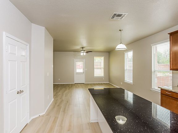 This San Antonio, TX, single-family home is in a desirable, well-developed neighborhood. The 1,970-square-foot. home has three bedrooms and two bath areas. It also features a large living room with a vinyl plank floor, a ceiling fan, and window spaces with wood-look blinds. There is a unique open kitchen with granite countertops and stainless steel appliances. The ceiling fan and walk-in closet in the main bedroom make it a fantastic room to spend your time in while indoors. In the bathrooms, there are dual-vanity sinks and a walk-in shower. When you explore the exterior space, there is a two-car garage, covered patio, and fenced yard. Contact us if you?d like to schedule a tour of the home.