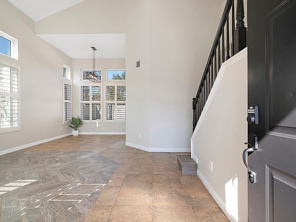 Discover this beautifully updated 4-bedroom, 2.5-bathroom home for rent in the heart of Poway, located within the award-winning Poway Unified School District. Spanning 1,798 square feet, this home features an open and bright layout with vaulted ceilings and fresh paint inside and out. The prime location offers easy access to shopping, restaurants, and hiking trails, with the added convenience of a back gate that opens directly to a scenic walking trail. Modern amenities abound, including an owned solar system with Tesla 18 panels (7.2KW), a Power Wall, and a Tesla Level 2 charger, along with a whole-home water filtration system by Aquasana. Inside, you'll find new flooring on the stairs and second floor, ceiling fans with lights in every bedroom. Retreat and relax in the beautifully remodeled master bathroom, complete with soaking tub and walk in closet. Central heating and air conditioning are controlled by a Nest thermostat for year-round comfort. The home provides extensive storage solutions, including a Flow Wall garage system, ceiling-mounted bike racks and overhead storage, wall shelving, and an additional backyard shed. Outside, the low-maintenance backyard with turf is perfect for relaxation or entertaining, featuring mood lighting on the roof eaves and outlets for convenience. The front yard landscaping is included, and the home is holiday-ready with hooks and outlets for festive lights. Security is a priority with three Nest floodlight cameras and a Ring doorbell camera. This incredible home blends modern features, functionality, and location in one of the most desirable communities. Don't miss the opportunity to call this remarkable property your home schedule your tour today and start making memories!