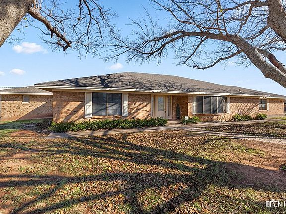 Gorgeous well-built 4 bedroom, 3bath brick home on 4.77 acres! Enjoy an updated custom kitchen, cozy fireplace, & private master suite. Bonus: mother-in-law suite, 59-tree pecan orchard, RV barn, shop, & equipment shed. Stay prepared with storm shelters, propane, solar panels, sprinkler, new septic, & updated HVAC—all just outside city limits with city water!