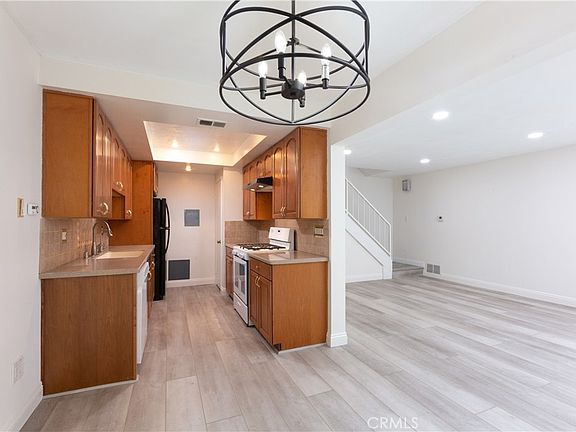 Welcome to Cerritos Villas! Make yourself at home in this private end unit. The first floor has a spacious living room and galley kitchen with new appliances, a pantry, and sliding door access to your covered, private patio. New paint and Luxury Vinyl flooring throughout the unit provide a feeling of continuity as you move from room to room, including on the stairs and onto the second floor, where the bedrooms and bathroom are located. Recessed lighting throughout the unit plus plenty of windows for natural light make the space bright and airy. Further features include dual-paned windows, mirrored closet doors, and plenty of green space for walking your dog. There is a one-car garage PLUS a parking spot next to the patio. The complex has multiple pools and a clubhouse for your leisure, and is located within easy distance of numerous restaurants and shopping centers, including the Cerritos Towne Center and Los Cerritos Center.