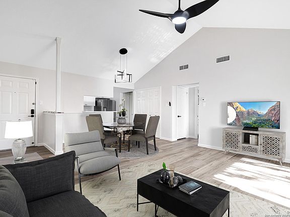 Experience stylish living in this freshly renovated corner unit condo in the desirable Hampton Hill community. This 2nd-floor unit offers a dual master bedroom setup, ideal for privacy and flexibility. The kitchen boasts brand-new stainless steel Samsung appliances and Quartz countertops, while the washer and dryer connection is conveniently located in the living room closet. The condo features new LVP flooring throughout and has been freshly painted, creating a modern and inviting atmosphere. Ceiling fans are installed in every room and on the outdoor balcony, which provides a relaxing space with pool views and includes a storage room. Situated in the North East Independent School District, this condo is part of a quiet community with easy access to local amenities. Schedule your showing today to see all that this home has to offer.