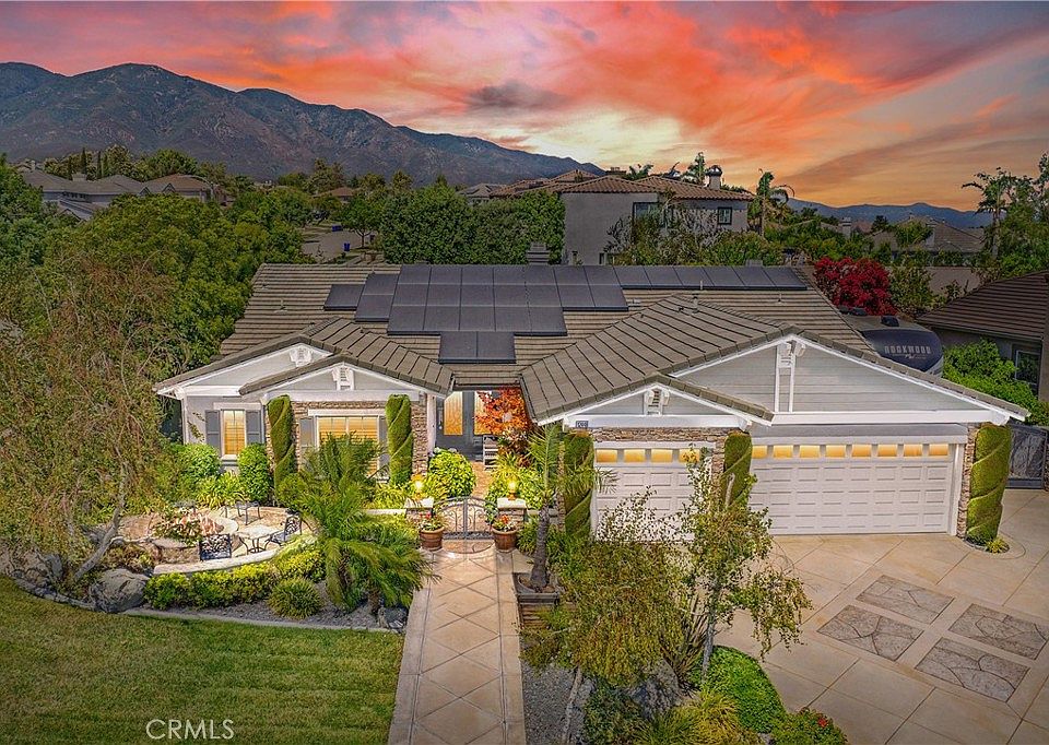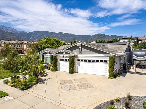 Gorgeous luxury home with swimming pool situated in the Masterpiece community of Rancho Cucamonga. 12446 Tejas Court is a SMART home combined with innovation and sophistication. The elegant entry double doors effortlessly welcome you into the open floor plan designed to provide timeless character, boasting 3 bedrooms, 3 bathrooms, a formal living room with 12' ceilings, formal dining room, a family room utilized as a home theater room, and an office that could be the fourth bedroom. Adjoining the family room is the gourmet chef's kitchen designed for refined culinary experiences, and features granite countertops, tiled backsplash, stainless steel appliances including a hooded vent & farm sink, center island with breakfast bar, and a sunny breakfast nook. The exquisite primary suite with room for a reading area has sliding doors leading to the covered patio. The primary bathroom embodies the meticulous design of a genuine sanctuary featuring a free-standing soaking tub with spa jets, a frameless walk-in shower, generously appointed tile, dual sinks with quartz countertops, upgraded fixtures, lighted mirror, mounted TV to catch a movie while soaking, and a large walk-in closet. Step outside through double doors into a backyard of tranquility and elevated outdoor living in your own tropical oasis. Gather with family and friends and enjoy the stone accented pool & spa with free-flowing water falls that are encased by lush landscaping, the BBQ area and shaded lawn. Situated on a corner lot with stunning curb appeal, a front yard retreat with sitting area, brick fire pit, koi pond, and blooming garden, and spectacular mountain views. A plus is a 3-car garage, RV parking, solar system, and wired for a security alarm system. Nearby are award-winning schools in the Etiwanda School Dist, Los Osos High Sch, Day Creek Park, Victoria Gardens Mall, restaurants, and entertainment. Easy freeway access for the commuter. This home offers all the conveniences of today's finest living!