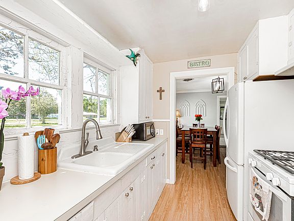 Adorable cozy cottage sitting on .56 of an acre! This shotgun house is the perfect starter home! The alley way kitchen has plenty of counter space, a gas stove, and a huge ceramic farmhouse sink. The wall of windows in the formal dining area bring in tons of natural light and there is so much potential for this space! The living room also boasts plenty of natural light but has such a cozy feel to it! The primary bedroom has no shortage of space or natural light. The extra bedroom has lots of storage with dual closets! The laundry room is spacious and has tons of opportunity for storage. A little over half an acre of stunning property is complete with a metal shop, huge carport/patio, and a little storage shed that can be converted to a chicken coop or dog kennel! Conveniently located to the interstate, airline hwy, shopping, and schools! Flood zone X so no flood insurance required and never flooded! Don't miss out on your chance to see this one, call me today for your private showing!