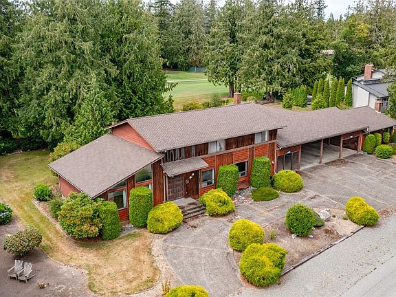 Diamond in the Rough! This unique golf course estate, perched on the second hole of Skagit Golf and Country Club, spans 0.56 acres across two lots with prime golf course frontage. Featuring a newer roof, the main home offers a spacious living room with high vaulted ceilings, a well-appointed original eat-in kitchen, and a formal dining room. Enjoy a massive rec/bonus room, a main-level office, and a half bathroom. Upstairs, the primary bedroom boasts a double closet and en-suite 3/4 bathroom, joined by three additional bedrooms, a full bathroom, and laundry. The property includes a 1,232 sqft carport, a 784 sqft shop/garage, and a 672 sqft one-bedroom apartment with a full kitchen, living, dining, 3/4 bathroom, and laundry. Don't miss it!!