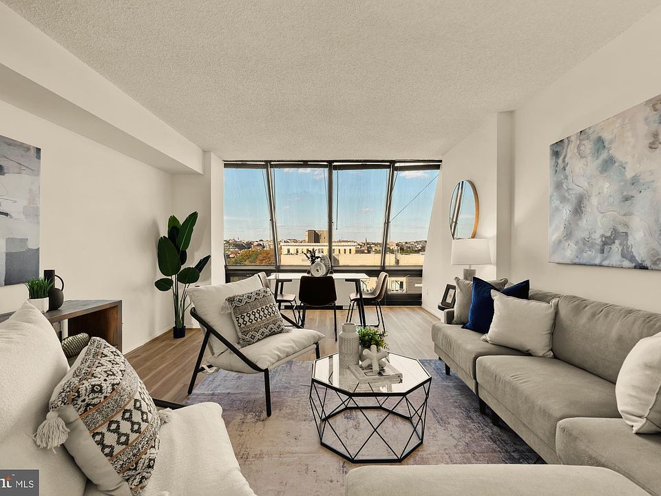 PRICE IMPROVEMENT! BEST SUN DRENCHED VIEWS OF DC - plus GARAGE PARKING - makes this 1 Bedroom - 1.5 Bath with BONUS space live like a 2 bedroom townhouse in the sky! You can easily enclose this BONUS space/room and make it a 2nd bedroom like other owners have done in the building. New Kitchen appliances and counter tops, beautiful newer floors; and all utilities (except internet) includes in the monthly fee, plus roof deck to entertain friends. Well managed building with onsite management. Be a part of LOGAN CIRCLE living, steps to Whole Foods, Studio Theatre, VIDA Gym, Le Dip, Trader Joes and Barcelona.