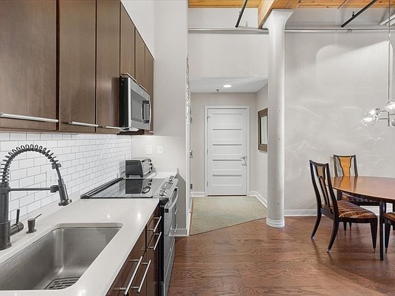 Welcome to the iconic Baker Chocolate Factory Lofts in Lower Mills, where history meets modern design.This meticulous, move-in ready 2 bed, 2 bath condo features soaring ceilings, exposed brick, and oversized factory windows that flood the space with natural light.A sleek, open-concept layout connects the kitchen, dining, and living areas — ideal for entertaining or relaxing. The kitchen is finished with modern stainless steel appliances, streamlined cabinetry, quartz countertops, and a built-in beverage fridge.The spacious primary suite offers a calm retreat with a beautifully updated en-suite bath and large walk in closet.Additional features include in-unit laundry.Residents enjoy access to an on-site gym, lap pool, sauna, and riverside patio with views of the Neponset River.Effortlessly blending industrial character and modern sophistication, this home delivers the best of city living -ready for you to move right in!