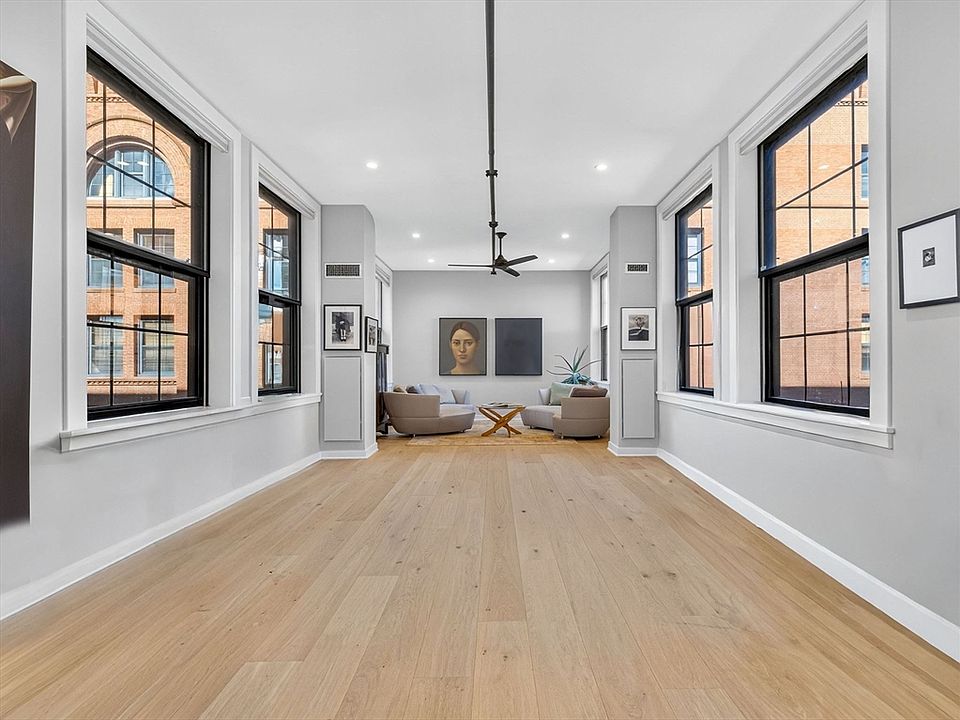 Experience modern luxury in the historic Baker Chocolate Factory. Blending the authentic charm of a converted mill with contemporary sophistication, this coveted bridge unit offers a versatile two-bedroom plus den layout with dramatic exposed beam ceilings and a wall of double-paned, soundproof windows that fill the home with natural light. Both bedrooms feature generous walk-in closets, while the den makes an ideal home office, guest space, or cozy TV room. The kitchen features premium appliances, sleek cabinetry, and stone countertops while the primary suite impresses with a spa-inspired bath including a glass-enclosed shower and soaking tub. Enjoy resort-style amenities including a fitness center, indoor pool, hot tub, and sauna—all set along the Neponset River, just steps to the Red Line, Pope John Paul II Park, the scenic River Trail, and the vibrant restaurants and cafés of Lower Mills. This home truly has it all!