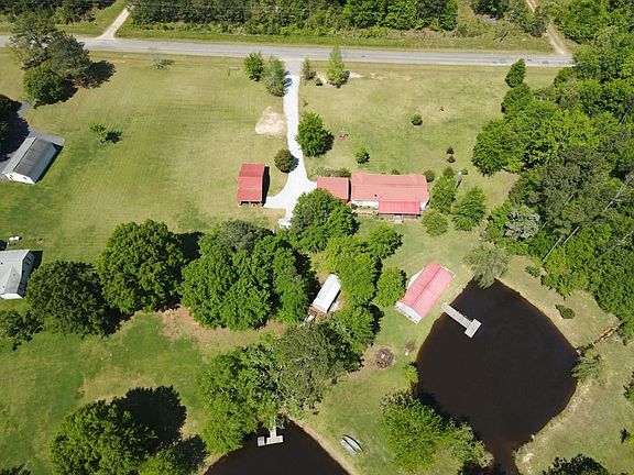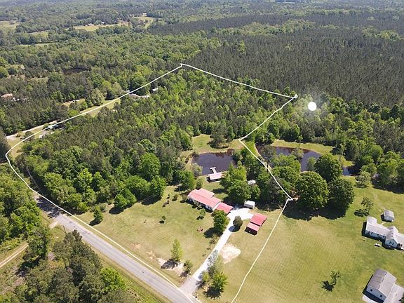 Do not miss this country retreat with almost 10 acres! The home itself has been carefully maintained. It has 3 beds and 2 baths, a wood-burning fireplace, separate laundry room, formal dining, and has had several elements recently remodeled including all new flooring less than two years ago. Outside is where the real fun begins --- There are several buildings and carports to fit all your needs: a large 27x24 carport, 20x42 barn, rear 12x32 covered porch with brand new metal roof, and a huge 20x40 picnic shelter great for big family gatherings, church get-togethers, etc! The crown of the property is the stocked fishing pond with a dock --- it's loaded with bass, bream, crappie, and channel cats. You will love the seclusion and peacefulness of this place. Get your showing scheduled today!