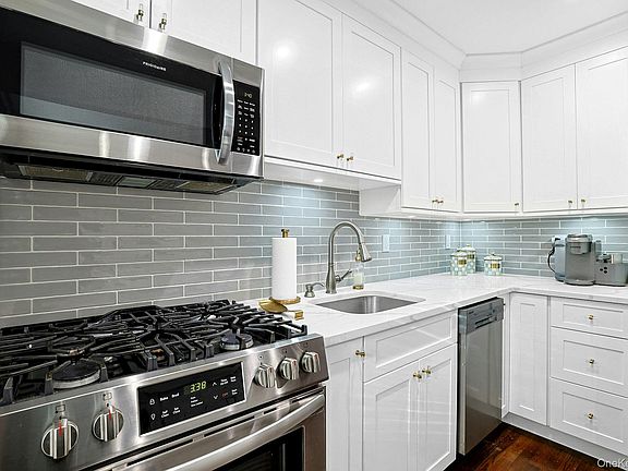 Come see this stylish duplex with modern luxuries and great exposures (winter lake view) Completely renovated and designed with today's buyer in mind. Sun drenched two bedroom, one bath cooperative with an abundance of closets is conveniently located in Eastchester --just a 30-minute train ride from Grand Central Terminal. The foyer leads to a bright, open concept living and dining room. A custom designed kitchen features, Quartz Counters, tile backsplash, and stainless appliances. Generously scaled bedrooms include a primary bedroom with walk-in closet & a spacious second bedroom. New hall bathroom, and laundry closet complete the second floor. This chic, turnkey apartment offers comfort coupled with style. Beautiful oak hardwood floors, Crown molding, LED recessed lights, New interior doors, & an extra bonus closet was created. Interlaken Gardens is set on 49-acres with a private beachfront at Lake Innisfree. Residents can enjoy swimming, sailing, fishing, or community activities around the beach. The community also includes a picnic area and playgrounds. Lake Isle Country Club offers an 18 Hole Golf Course, Tennis, 5 Pools at a discounted rate for Eastchester residents. Waitlist for garage parking. Street parking is available. Maintenance includes heat, real estate taxes, hot water, electric & gas. $85.00 per month for Verizon cable & Internet.
